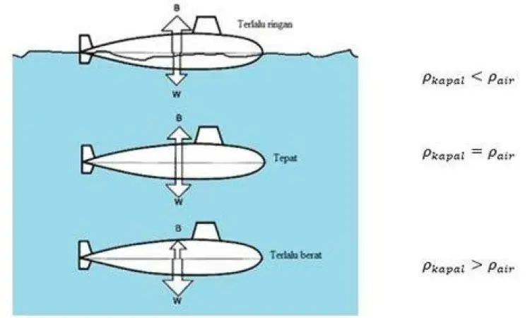 - Kapal Selam: Alat ini adalah contoh paling kompleks. Kapal selam memiliki tangki ballast yang bisa diisi air (untuk tenggelam) atau udara (untuk terapung), sehingga massa jenis rata-ratanya bisa diubah-ubah.