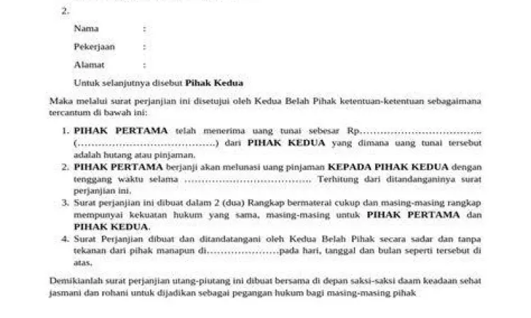 | Adanya Objek Tertentu | Hal yang diperjanjikan harus jelas, dalam hal ini adalah jumlah uang atau barang. | Batal Demi Hukum (Void) |